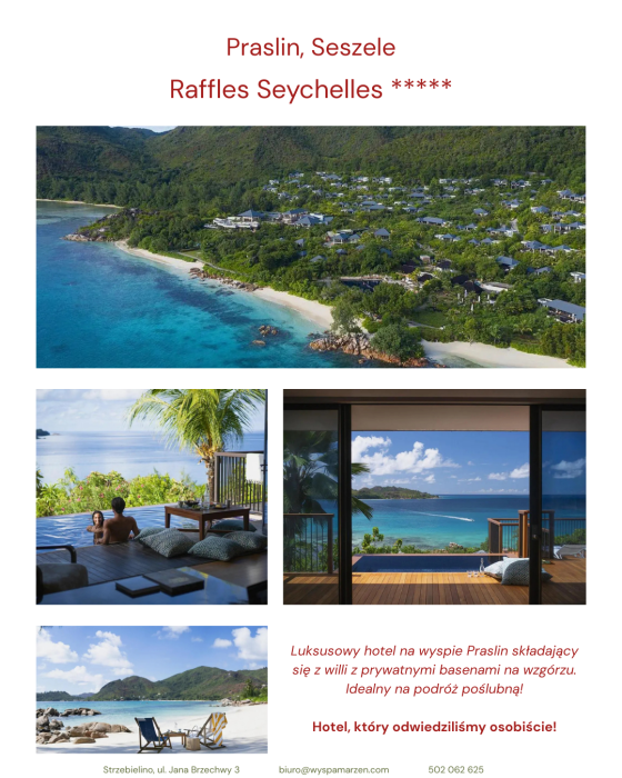 A na podróż poślubną... polecamy przede wszystkim Seszele, Malediwy, Tajlandię lub Mykonos. We wszystkich tych miejscach byliśmy i doradzimy Ci najlepszy hotel i atrakcje na miejscu.